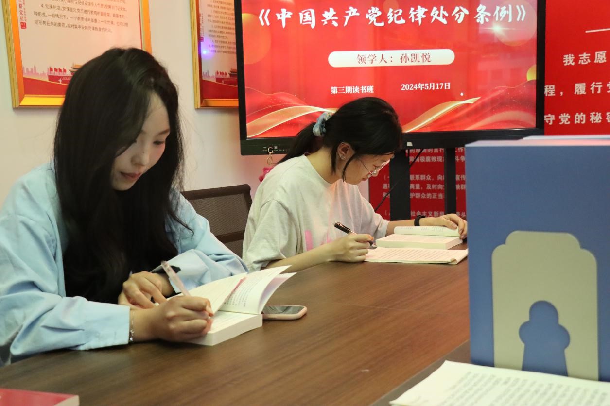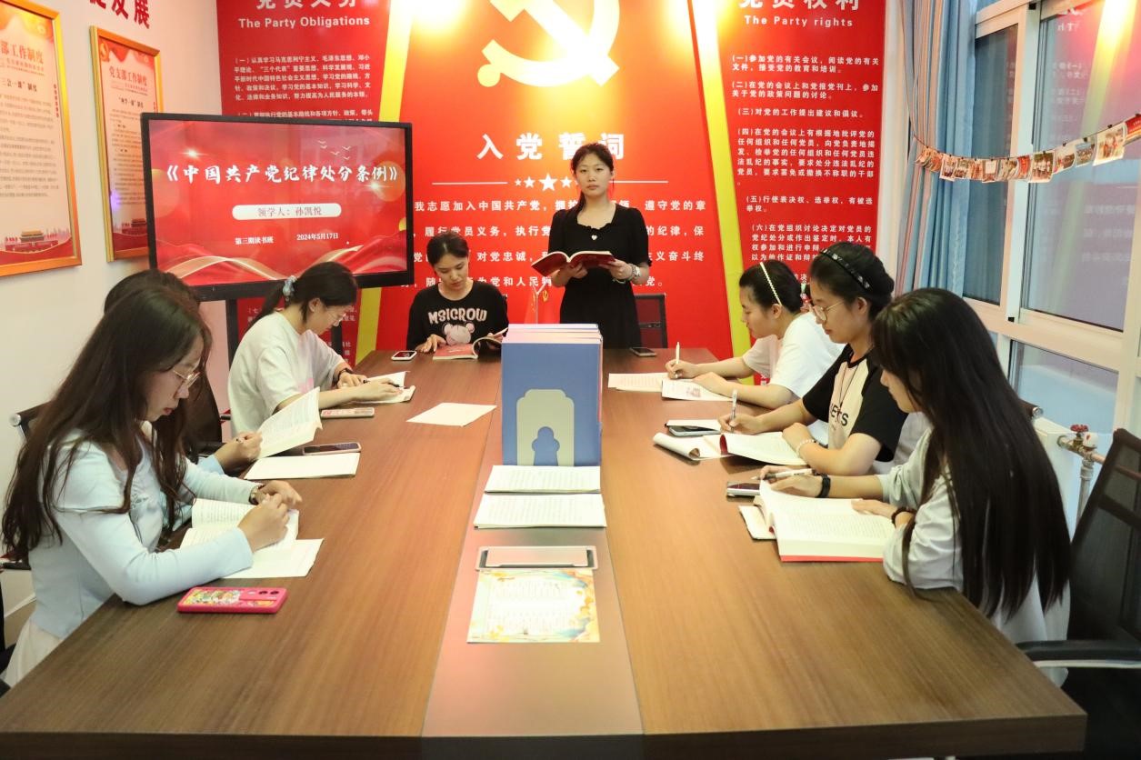 为深入贯彻落实党的二十大精神,进一步教育和引导学生干部学纪、知纪、明纪、守纪,推进党纪学习教育走深走实,5月17日,bevitor伟德国际1946在诚园4号楼210党团活动室开展了第三期党纪学习教育读书班活动,领学人孙凯悦和靳奉钰带领党员和入党积极分子进行学习。