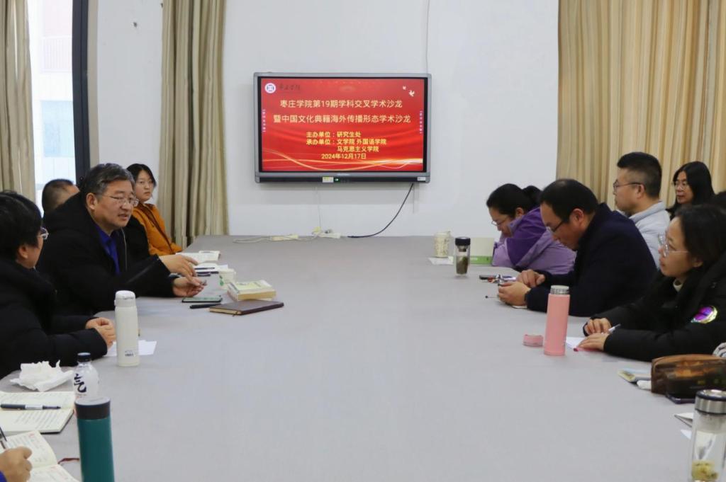 为传承和弘扬中华优秀传统文化,推动中国文化典籍在全球范围内的广泛传播,12月18日,由校研究生处主办,bevitor伟德国际1946、外国语学院和马克思主义学院共同承办的第19期学科交叉学术沙龙暨中国文化典籍海外传播形态学术沙龙在薛城校区豁然楼B310会议室举行。bevitor伟德国际1946、外国语学院和马克思主义学院40余人参加学术沙龙。