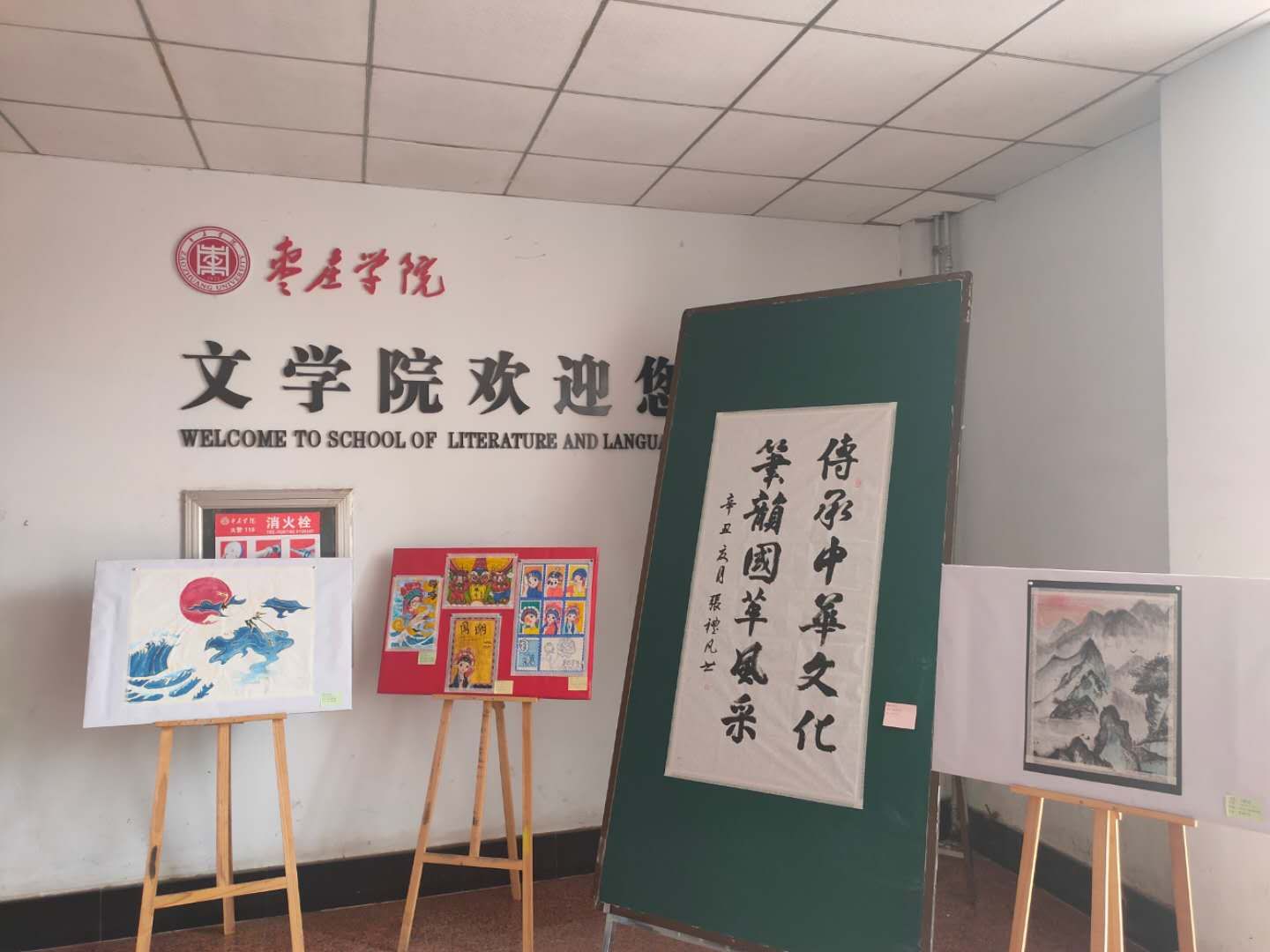 为传承中华文化,丰富课余生活,6月15日,bevitor伟德国际1946在文科楼一楼二楼大厅举办“传承中华文化,笔韵国潮风采”书画作品展。