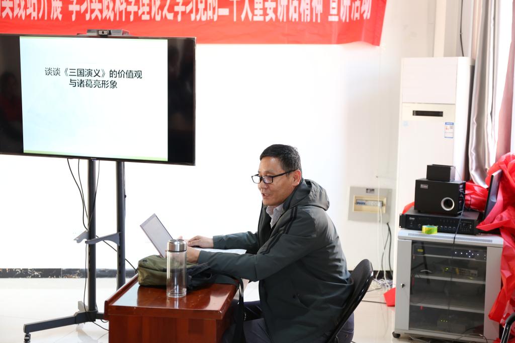 教工第二党支部李思华,从分析《三国演义》里诸葛亮的形象,总结了以道德取向为主导的儒家价值观,诸葛亮鞠躬尽瘁死而后已的忠君思想,知其不可而为之的舍生取义精神,为社区居民补足精神之钙。