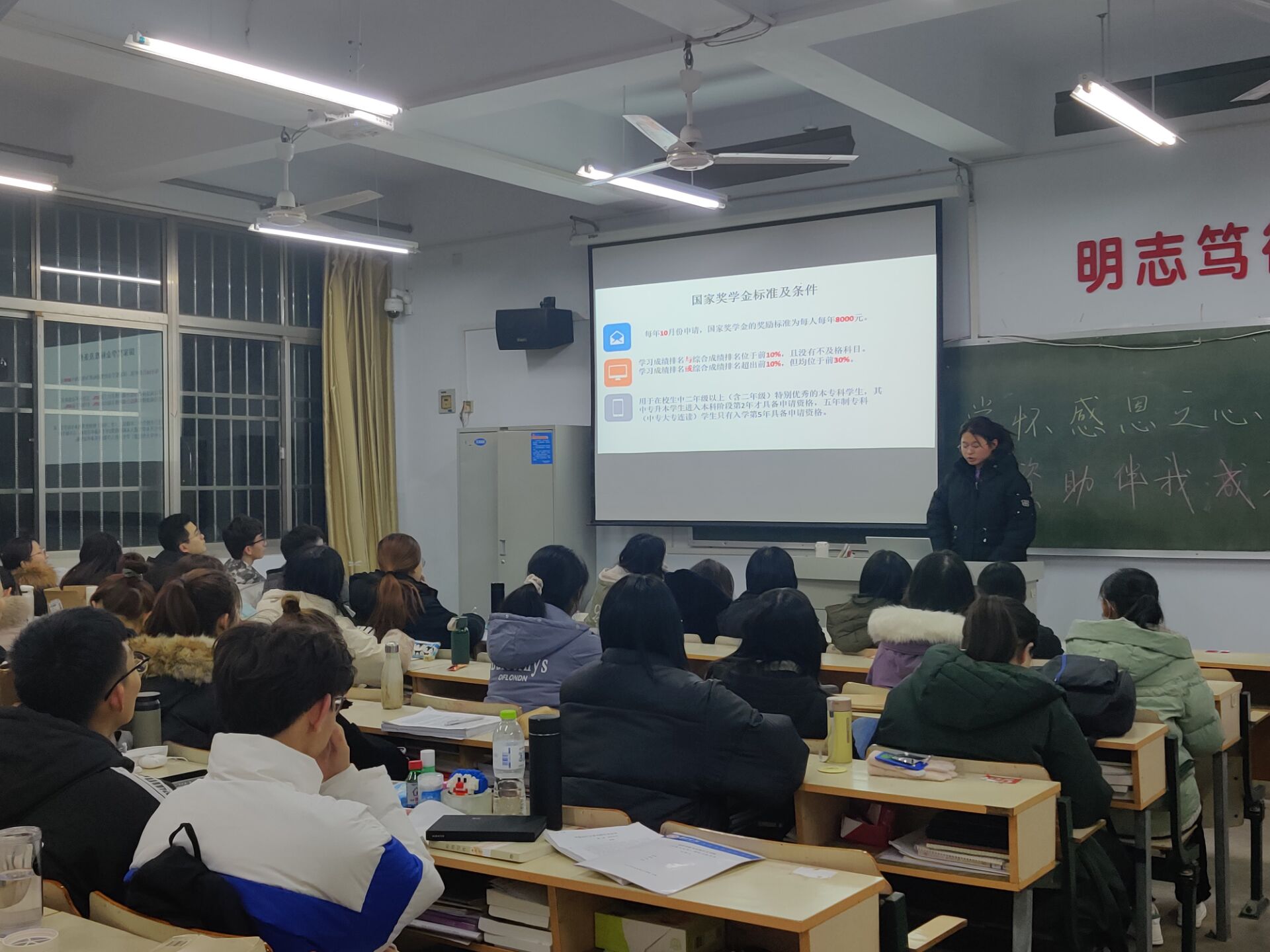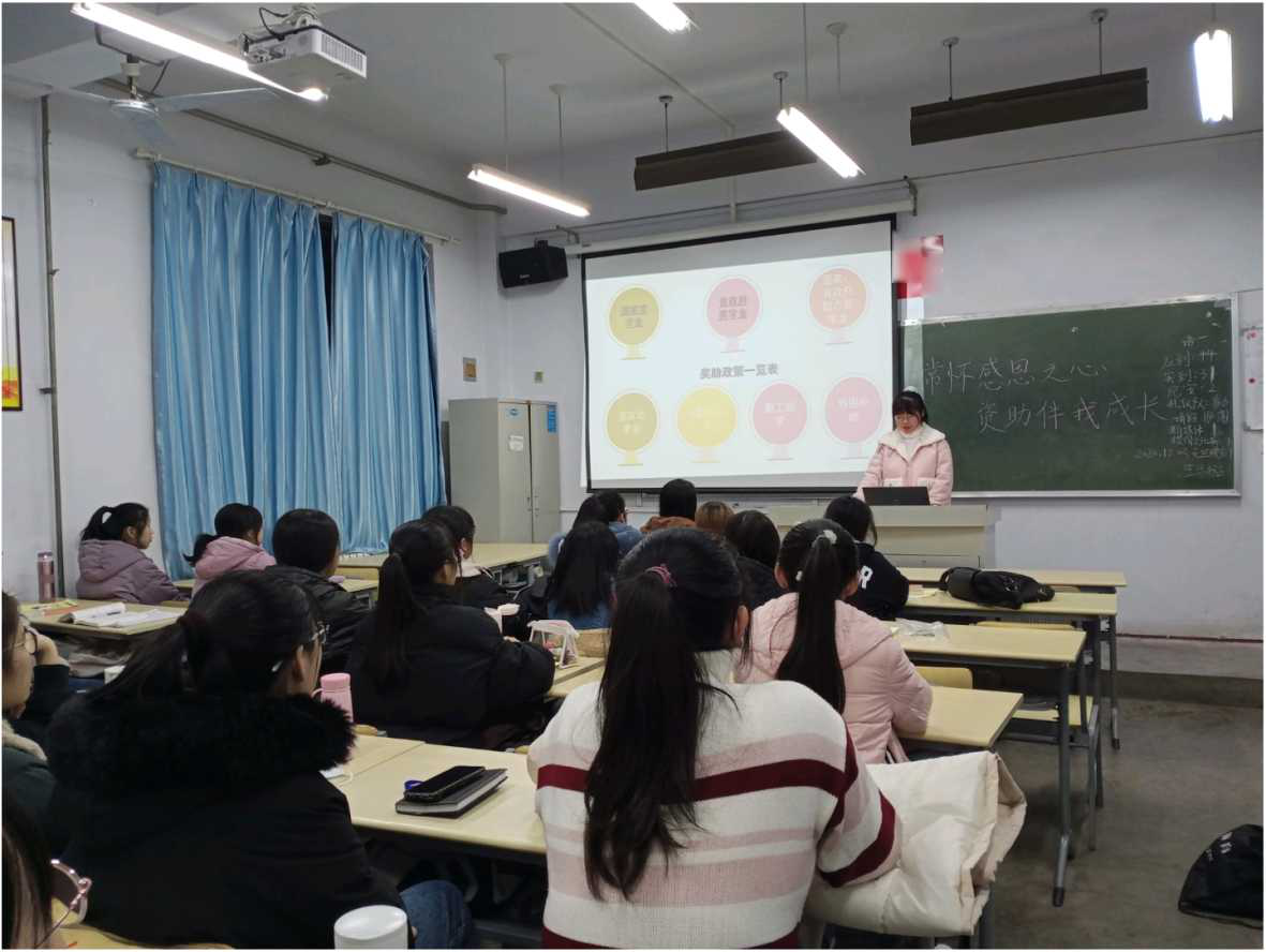 为认真贯彻落实学生资助政策,充分发挥资助育人的功能。12月3日,bevitor伟德国际1946各班级开展“常怀感恩之心,资助伴我成长”资助政策宣讲主题班会。曾获得学院“资助宣传大使”和“bevitor伟德国际1946十大励志榜样”的同学们为各班级进行资助政策解读和宣讲,各班学生到场学习。