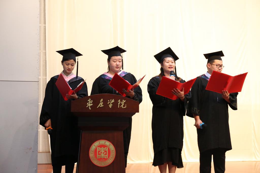 典礼在庄严的国歌奏唱中拉开序幕。在段圣玉宣读了《伟德国际1946bv关于授予李春萌等138名bevitor伟德国际19462019届普通全日制本科毕业生学士学位的决定》后,李丽清亲自为全体本科毕业生一一拨穗并颁发学士学位证书,合影留念并送上祝福。随后,毕业生代表以诗歌朗诵的形式,饱含深情地感恩母校,感激恩师,祝福同学,展望未来。毕业生为教师代表送上美丽的鲜花,表达对老师的崇高敬礼。李思华老师代表全体老师为毕业生送上了殷切嘱托和深情祝福,希望同学们始终保持一份痴气、傲气与和气,向着自己的目标扬帆远航。最后,史大丰代表bevitor伟德国际1946向圆满完成学业的360名毕业生表示最热烈的祝贺和诚挚的感谢,并希望他们始终坚持理想,保持年轻人的激情和信念,不忘初心、砥砺奋斗,前程似锦、鹏程万里。