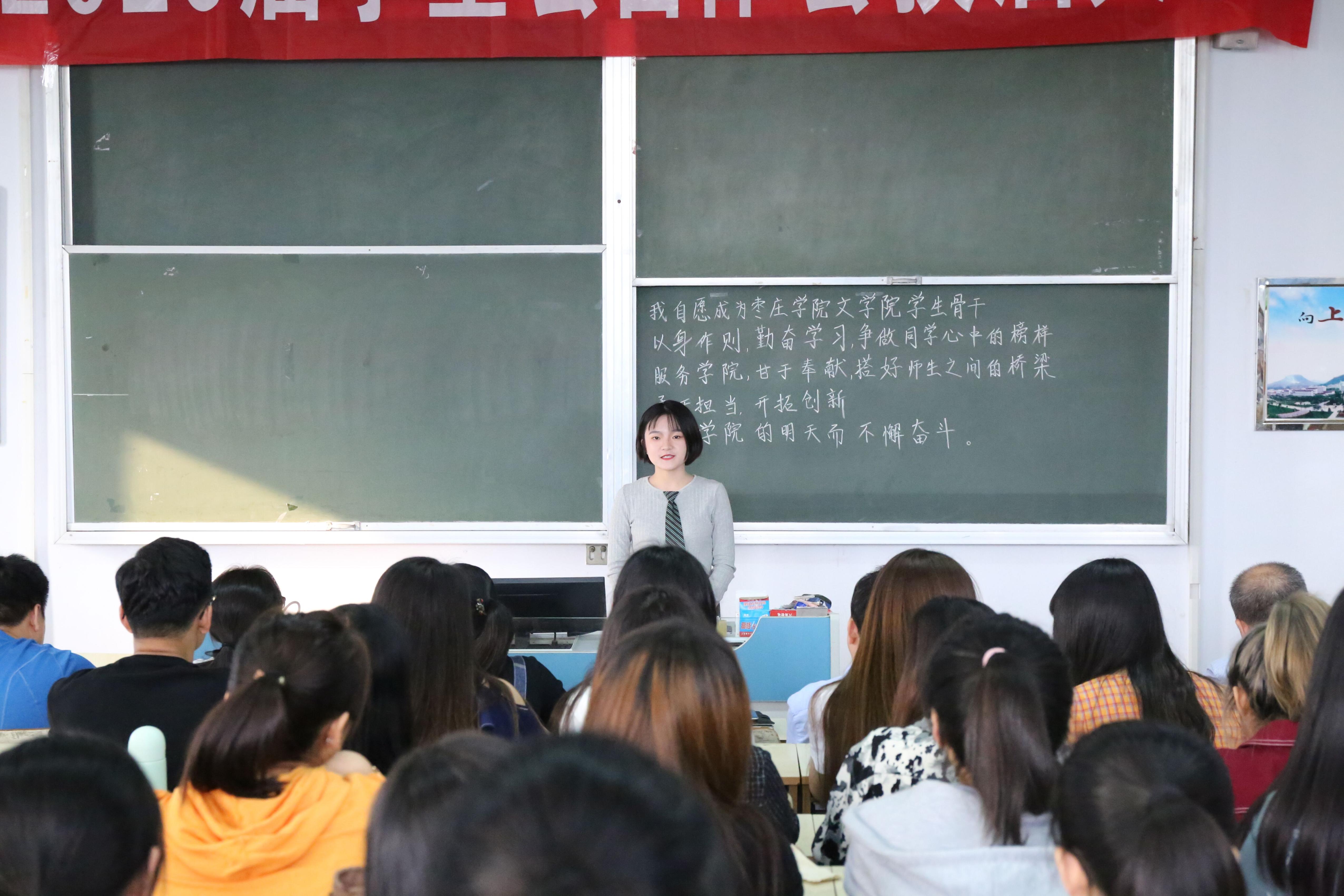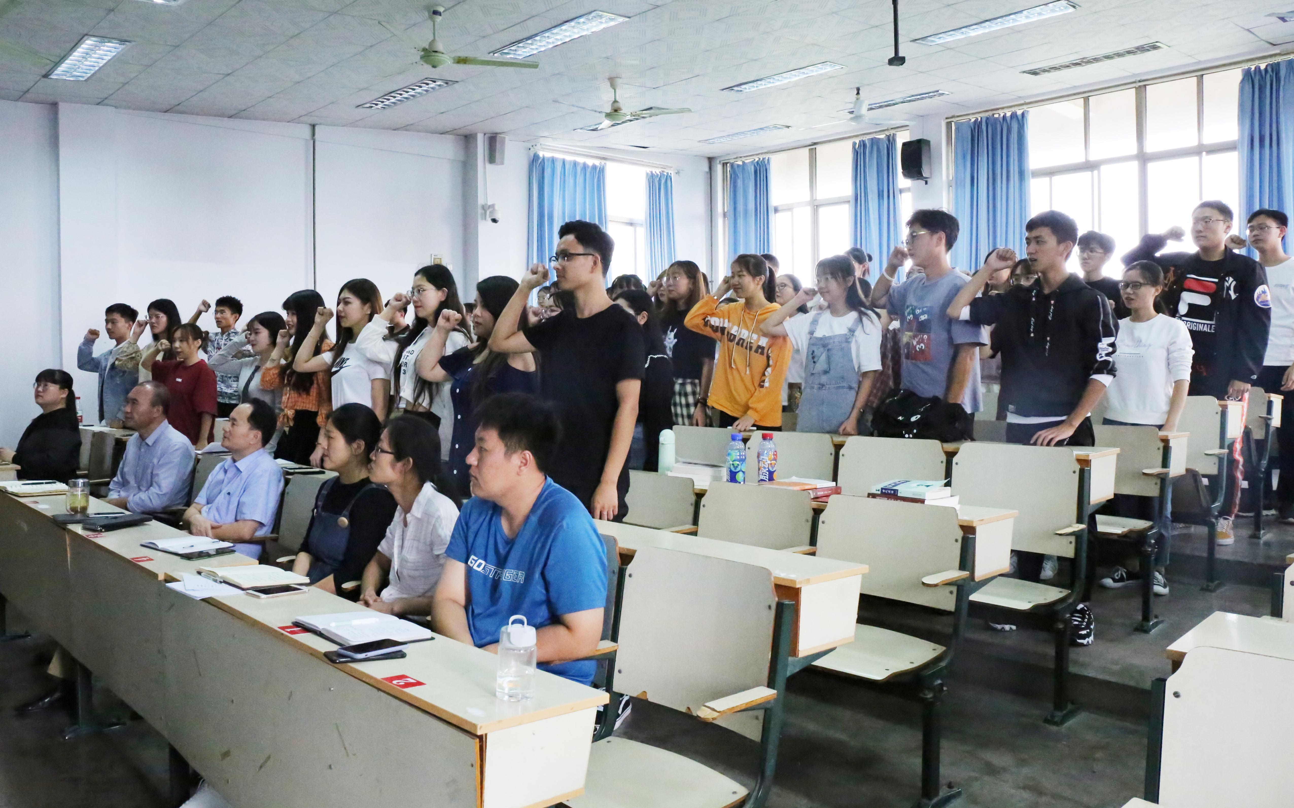 会议第二项是全体学生会干部进行宣誓,以此表达学生干部为学生服务,为学院奉献的决心。