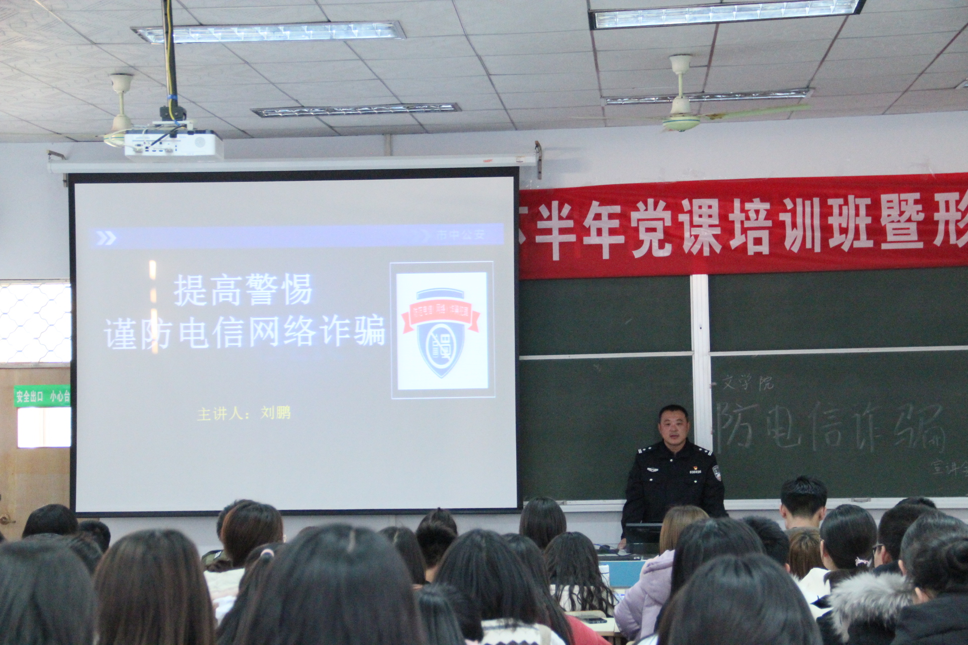 为使同学们熟悉生活中常见的诈骗形式,增强同学们的安全防范意识。bevitor伟德国际1946于12月4日在文科楼217教室举办防电信诈骗宣讲会。本次宣讲会由渴口派出所刘鹏警官主讲,18、19级部分学生到会聆听。
