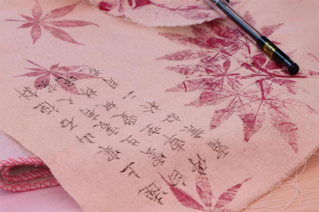 植物拓染是我国优秀的非物质文化遗产,是以植物的根、茎、花、叶、果实、果皮等为染材,通过敲击来榨取它的汁液,在天然纤维的材料上染色的一种拓染方法。在活动现场,志愿者们向同学们介绍了拓染的工艺步骤,参加活动的同学们挑选好自己心仪的花草,擦干水分,在帆布袋上排列布局,用透明胶带固定后,用拓染锤投入其中进行敲打,植物的脉络一点点清晰地展现在袋子上,以布为纸,用花作画,颜色不同的花与叶通过拼搭组合,使一个个看似平凡的帆布袋,瞬间变成了一件件充满创意、色彩斑斓的艺术品。现场欢声笑语,同学们热情四溢。