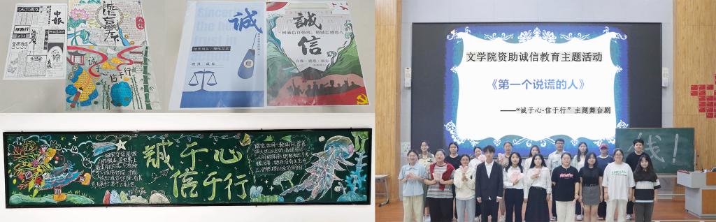 跃然纸上,宣传从心出发。在活动期间,同学们以“以诚作画,以信为墨”和“信字当头,理性在手”两大主题,进行了手抄报与主题海报的设计与创作。在创作过程中,同学们广泛搜集素材、细致设计版面,并以独到的视角与创新的理念,将诚信的核心理念与故事巧妙地融入作品中。部分作品以诚信故事为脉络,部分则以名言警句为点缀,深刻展现了同学们对诚信理念的深入理解和独到见解。“诚于心·信于行”主题黑板报,现已在豁然楼A区四层展出。该板报通过生动的插图与精炼的文字,以图文并茂的形式,生动地展示了诚信的重要性,将同学们对诚信的深刻理解和感悟直观地呈现在板报上。