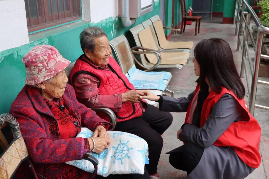 志愿者们身着统一服装,满怀热情,为老人送上精心准备的水果与重阳节的美好祝福,并尽己所能为老人提供服务。有的帮老人打扫卫生、擦拭桌椅;有的陪老人聊天、唠家常、问候老人的身体状况,倾听他们的心声;有的为老人展示各色才艺,引得老人开怀大笑,现场气氛其乐融融,志愿者们用简单而真挚的行动传递着对老人的关爱。