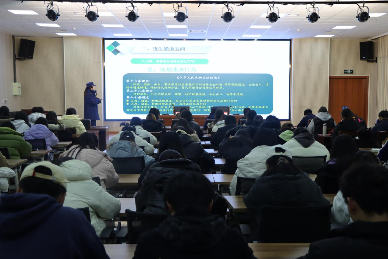 在宣讲中,朱晓仟通过近期全国发生的典型火灾案例,为师生们讲解校园消防安全薄弱环节及突出问题,详细分析了火灾的形成原因及日常的火灾预防措施。同时,宣讲员还就火灾的扑救方法及发生火灾如何正确逃生、各类消防器材的正确使用及日常维护、高层建筑火灾的自救、逃生注意事项等内容进行了深入浅出的讲解,使现场师生深刻认识到消防安全的重要性。