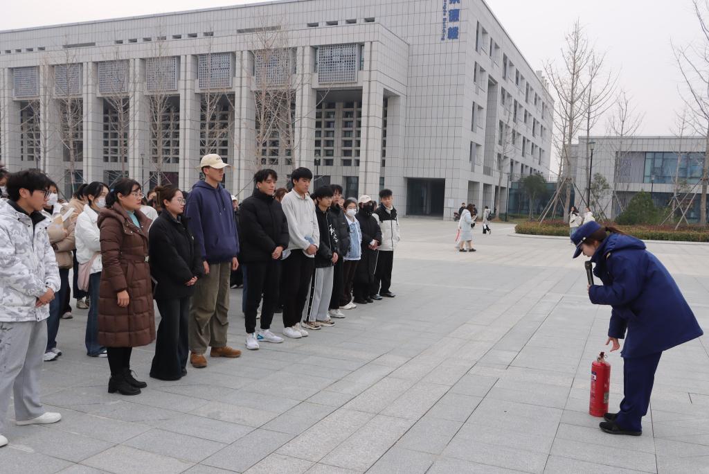 在演习中,朱教官为师生们讲解了灭火器、消火栓、消防水带的正确使用方法及注意事项,并当场演示了灭火器的使用方法,嘱咐大家学会以后教给身边的人。