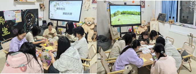 本次活动创新延展"一站式学生社区"文化浸润工程,在社区共享空间打造“流动美术馆”“春日诗廊”等互动场域,使美育真正融入生活场境。通过“自然观察日志”“光影叙事工坊”等特色项目,引导学子在盎然春意中建立与自然的深度对话,让专业教育与生命教育在春风化雨中同频共振。