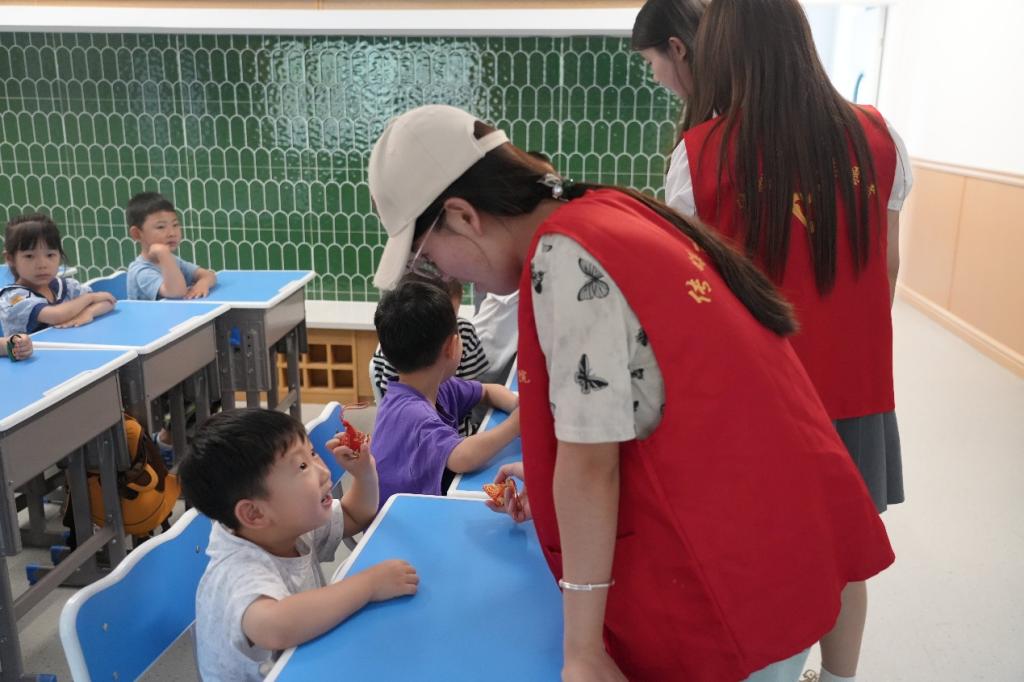 “端午小课堂”上,志愿者用生动语言讲述端午节由来、习俗,展示相关图片视频,让孩子们直观认识传统节日。互动问答环节,孩子们踊跃发言,表现优异者获赠小奖品,热情高涨。