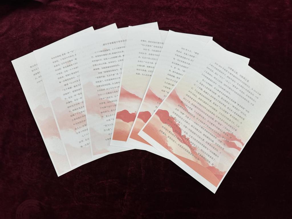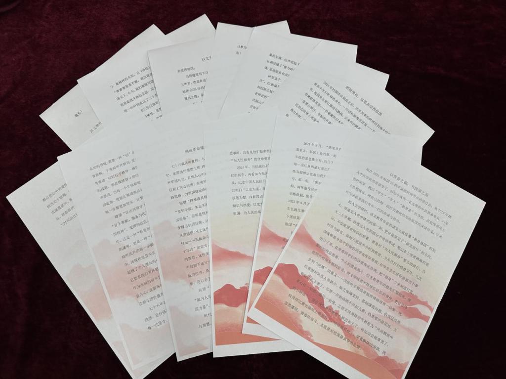 比赛紧扣主题,为我院学子搭建起抒发爱国情怀的青春舞台。同学们围绕主题,从回望发展成就、聚焦青年担当、展望未来发展三个维度展开创作,将个人理想与国家发展紧密结合,生动诠释了在科技创新、文化传承等领域的青春责任,字里行间满含爱国赤诚与强国之志。参赛作品体裁丰富多元,散文、诗歌、议论文、小说等形式兼具,既有对历史的深情回望,也有对当代的创新表达,充分展现了我院学子扎实的文学功底与强烈的社会责任感。经评委团队多轮严谨评审,最终评选出一等奖2名、二等奖4名、三等奖7名及优秀奖若干。