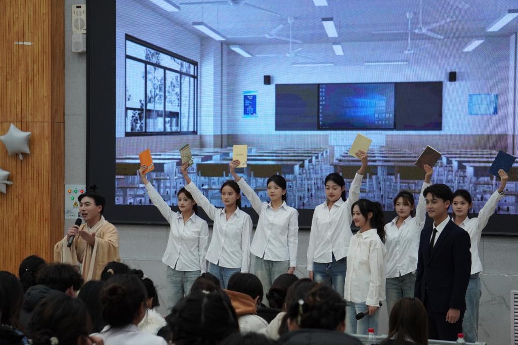 此次活动华锦礼仪队以“承文礼之美,展华夏风华”为核心进行展示。队员们身着笔挺西装与典雅汉服,在光影中演绎跨越时空的礼仪对话,从传统天揖礼的庄重到现代社交礼的得体,从规范姿态到优雅舞蹈,每一个动作都精准诠释着“礼序乾坤,乐和天地”的文化内涵。