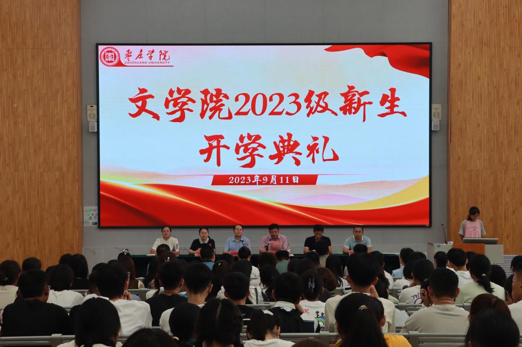 青年教师代表刘钰,激励同学们在担当中历练,在尽责中成长,勉励同学们积极努力地参与自身学科的建设,做复合型人才、书写自己的人生篇章。2021级汉语言文学专业程晓云作为优秀学生代表,通过自己过去两年的大学生活感悟和自身成长经历,告诉大一新生既要脚踏实地,又要仰望星空,既要结合实际,又要有理想的灯塔照亮自己前行的路。新生代表周艳萍希望和大家一起树立远大的奋斗目标,争做一名品学兼优的好学生。典礼的最后,由2023级汉语言文学本科二班张兆臻带领全体2023级新生进行了庄严的入学宣誓。