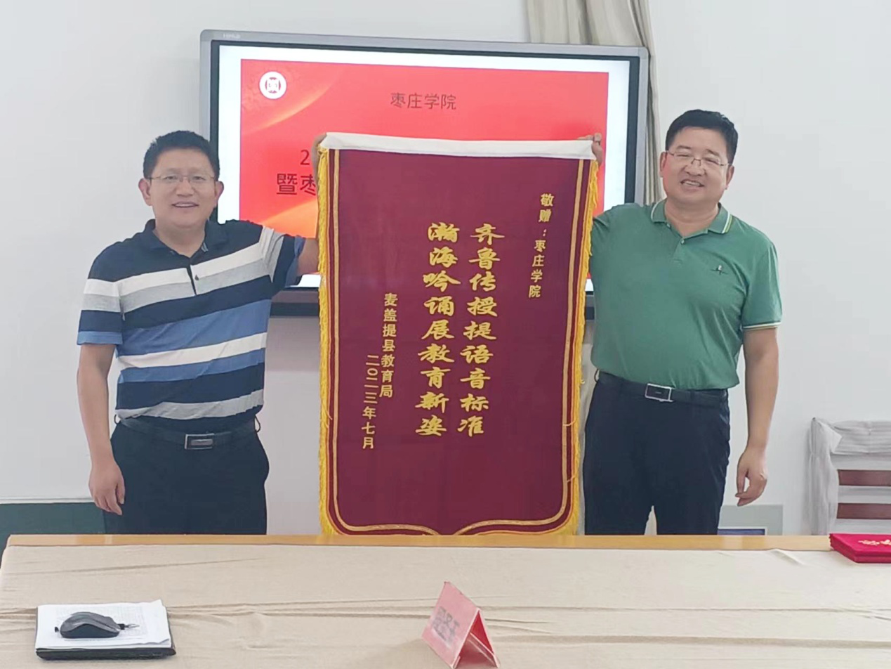bevitor伟德国际1946院长张爱民首先致辞,他说,根据省语委办工作部署,伟德国际1946bv与麦盖提县组成对口培训团队,对麦盖提县职业学校、中小学、幼儿园的部分教师进行了为期十天的国家通用语言文字能力提升线下集中培训。在麦盖提县教育局、伟德国际1946bv培训团队和全体学员的共同努力下,培训取得了良好的效果。同时,为提高枣庄市幼儿园教师及保育员普通话水平,增强其职业素养与教育能力,根据山东省教育厅文件精神,伟德国际1946bv与枣庄市教育局密切合作,组织开展了2023年枣庄市幼儿园教师和保育员普通话培训,精心组织,严格施训,保证了培训顺利完成。其后培训项目负责人姜夫军老师、葛婷老师、优秀助教朱惠英分别发言,教务处副处长李宏运宣读了优秀助教名单,领导为优秀助教颁发了证书。最后,教务处处长房永磊讲话,他指出,伟德国际1946bv领导高度重视对口麦盖提县教师国家通用语言文字能力提升线下集中培训和2023年枣庄市幼儿园教师及保育员普通话培训,多次召开专题工作会议,协调相关部门单位,提高政治站位,明确职责分工,周密协同、主动作为,专门组建了由国家级、省级普通话水平测试员作为授课主讲教师的优秀培训团队和以普通话二甲以上水平、具有丰富支教经验的优秀师范生助教团队,严格根据要求规范培训,确保了培训任务的圆满完成。今后,我校将科学谋划、统筹部署,健全工作机制,完善工作措施,积极做好国家通用语言文字培训,提高参训学员的国家通用语言文字素质和从业能力。