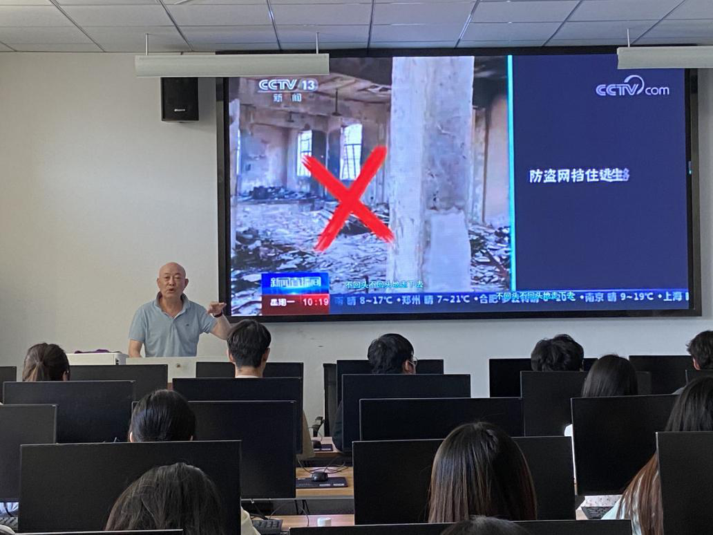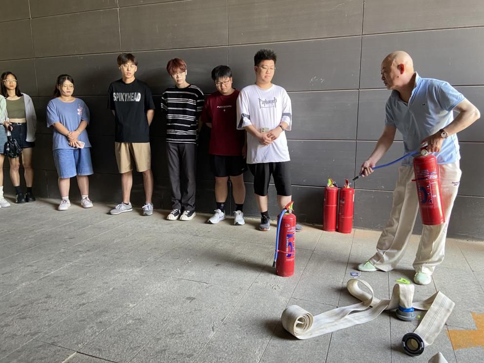 本次活动首先由保卫处消防科宋宏伟老师对参演师生进行了应急演练培训,向同学们播放了事故案例警示视频,着重讲解了实验室和宿舍用电安全,生动讲授了火灾发生成因、初期火灾的扑救、疏散逃生方法、组织疏散能力以及灭火时的注意事项等,让同学们懂得火灾的危险性、懂得预防火灾的措施、教会使用消防器材扑救初起火灾和逃生疏散的方法。