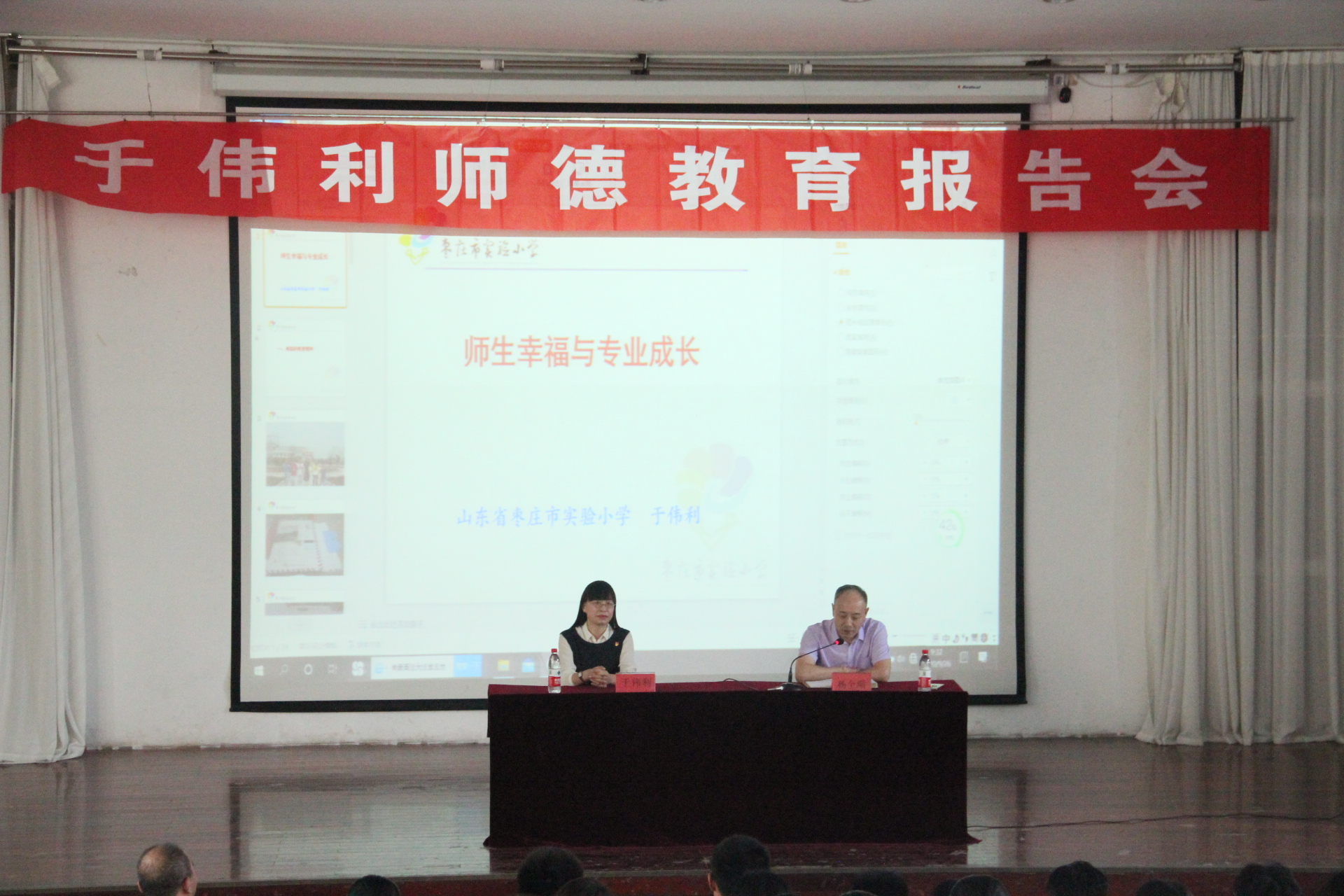 9月26日上午,bevitor伟德国际1946在文科楼报告厅举行了名师工作坊专家教育报告会,邀请国家“万人计划”领军人才,享受国务院政府特殊津贴专家,特级教师,正高级教师,全国教学名师,全国首届教育部“领航名师”、国家首届名师名校长“领航班成员”,全国小学语文课堂教学大赛特等奖,全国十佳班主任,全国三八红旗手,国家专利获得者,枣庄实验小学校长于伟利来bevitor伟德国际1946做师德教育报告。bevitor伟德国际1946副院长杨全顺主持了报告会,bevitor伟德国际19462021届师范专业毕业生及汉语言文学专业的学生参加了报告会。