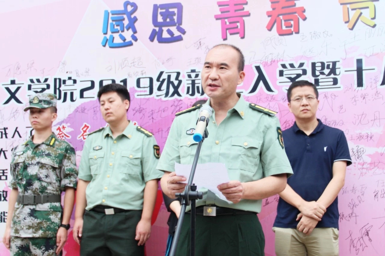 党总支书记史大丰向2019级新同学致以十八岁成人的祝贺,并提出几点希望和要求:一要志存高远;二要常怀律己之心;三是要常修感恩之德。希望全体同学在军训的洗礼中,用良好的精神面貌展示bevitor伟德国际1946学子的时代风采,用实际行动为自己、为家人、为学院争创一流业绩,书写一流答卷。