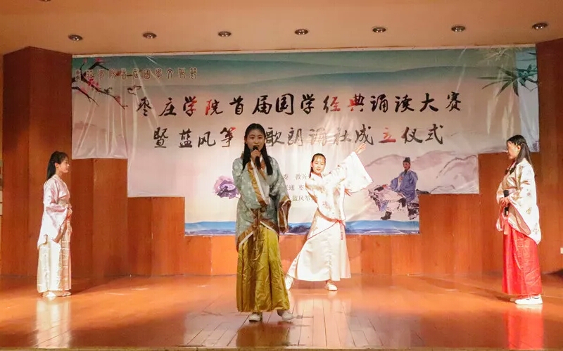 “品读国学,传承经典”,5月9日晚,由我校关工委、教务处、语委办主办,bevitor伟德国际1946承办的伟德国际1946bv首届国学经典诵读大赛暨蓝风筝诗歌朗诵社成立仪式在音乐厅举行。
