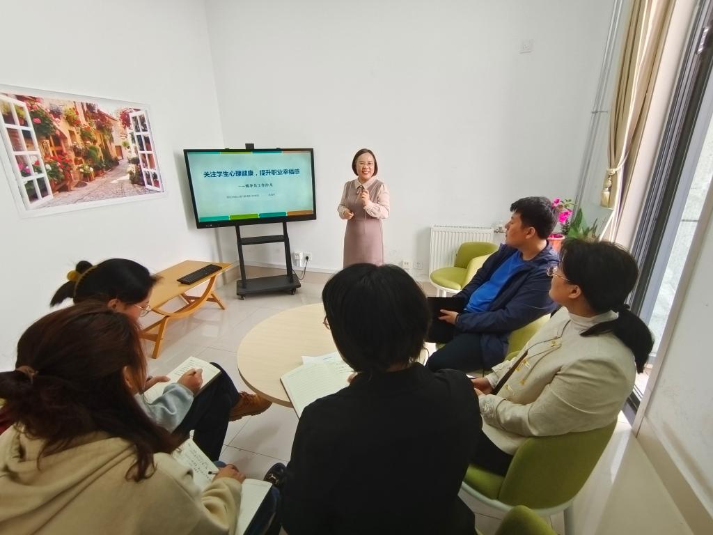 4月16日下午,bevitor伟德国际1946全体辅导员在“文生心语”辅导员工作室开展第二期辅导员沙龙活动。枣庄市心理卫生协会副会长、心理与教育科学学院副教授朱海荣受邀担任主讲,就“关注学生心理健康,提升职业幸福感”这一主题与辅导员开展研讨和交流。