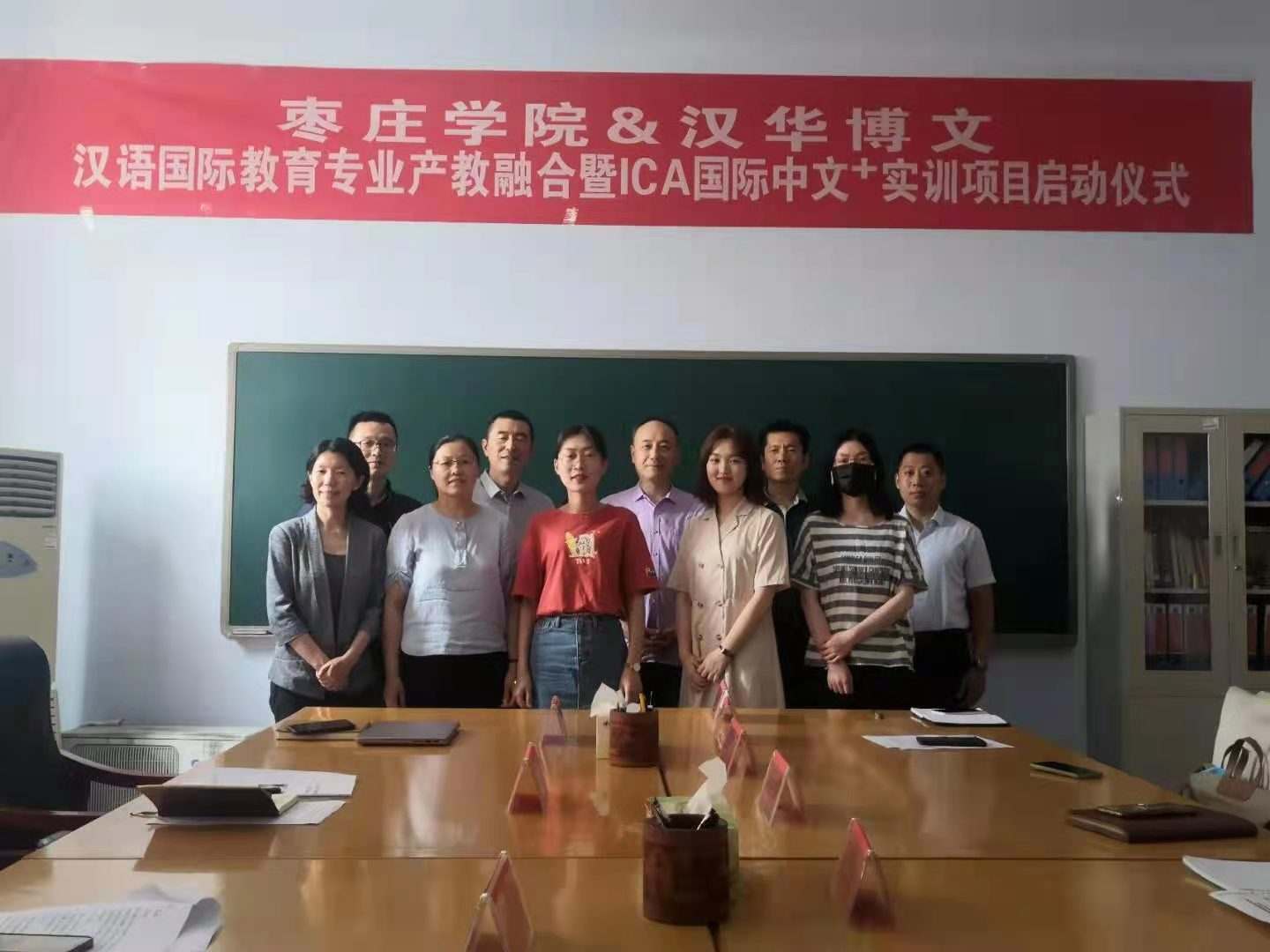 6月2日下午,bevitor伟德国际1946在会议室举行伟德国际1946bv&汉华博文汉语国际教育专业产教融合暨ICA国际中文+实训项目启动仪式,中国市场学会国际交流工作委员会主任、汉华博文(北京)教育科技有限公司创始人张海波先生,中国市场学会国际交流工作委员会副主任、ICA-汉华博文项目教研负责人周新颖女士,ICA-汉华博文项目负责人王涛先生,bevitor伟德国际1946副院长杨全顺教授出席会议,会议由bevitor伟德国际1946副院长段圣玉主持,bevitor伟德国际1946汉语国际教育专业负责人吕冰和汉语国际教育教研室主任张明芹、专业教师张丽丽、李冰及学生代表参加了会议。