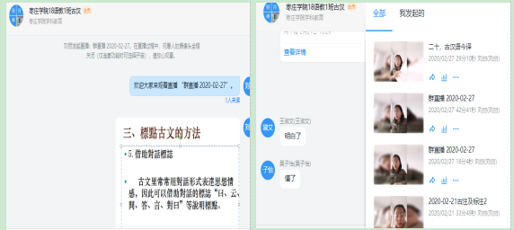 古代汉语是语教专科的专业必修课,而慕课中并没有搜寻到与我校古代汉语教材相配套的线上课程。因此,在当前疫情特殊时期选用在线直播的方式进行教学,以实现“停课不停教,停课不停学”。