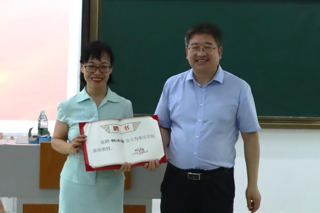 5月21日下午,bevitor伟德国际1946(传媒学院)在增信楼3418教室举行客座教授聘任仪式暨杨洪菊教授学术报告会,并围绕师范生培养作专题报告。bevitor伟德国际1946(传媒学院)副院长贾鲁华主持会议,学院师生代表150余人参加活动。
