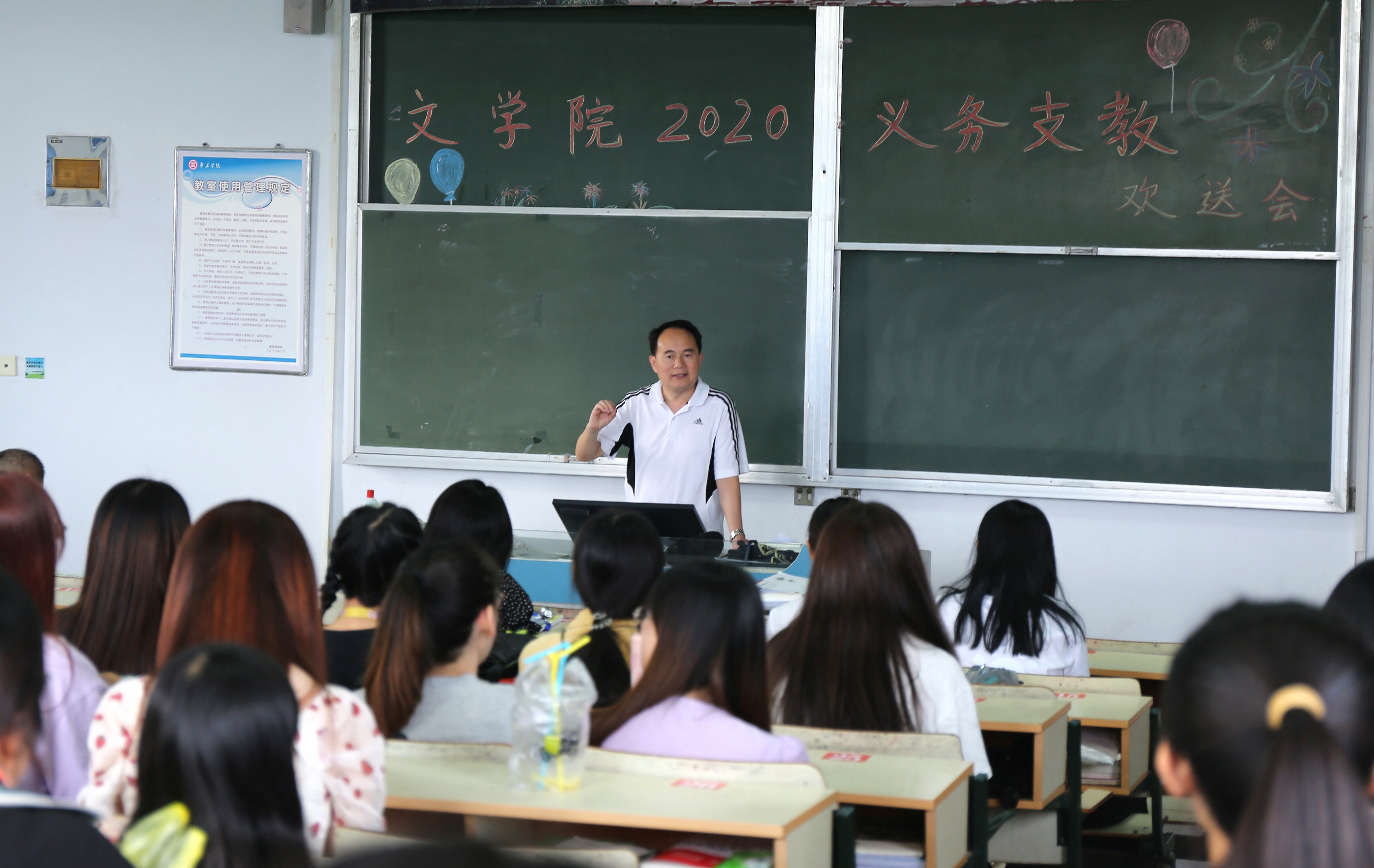 院党总支副书记王昌龙最后又强调几个细节工作。广大支教学生表示,一定不辜负学院期望,用心支教,用爱教学,圆满完成此次支教任务。最后,全体支教学生与学院领导合影留念。