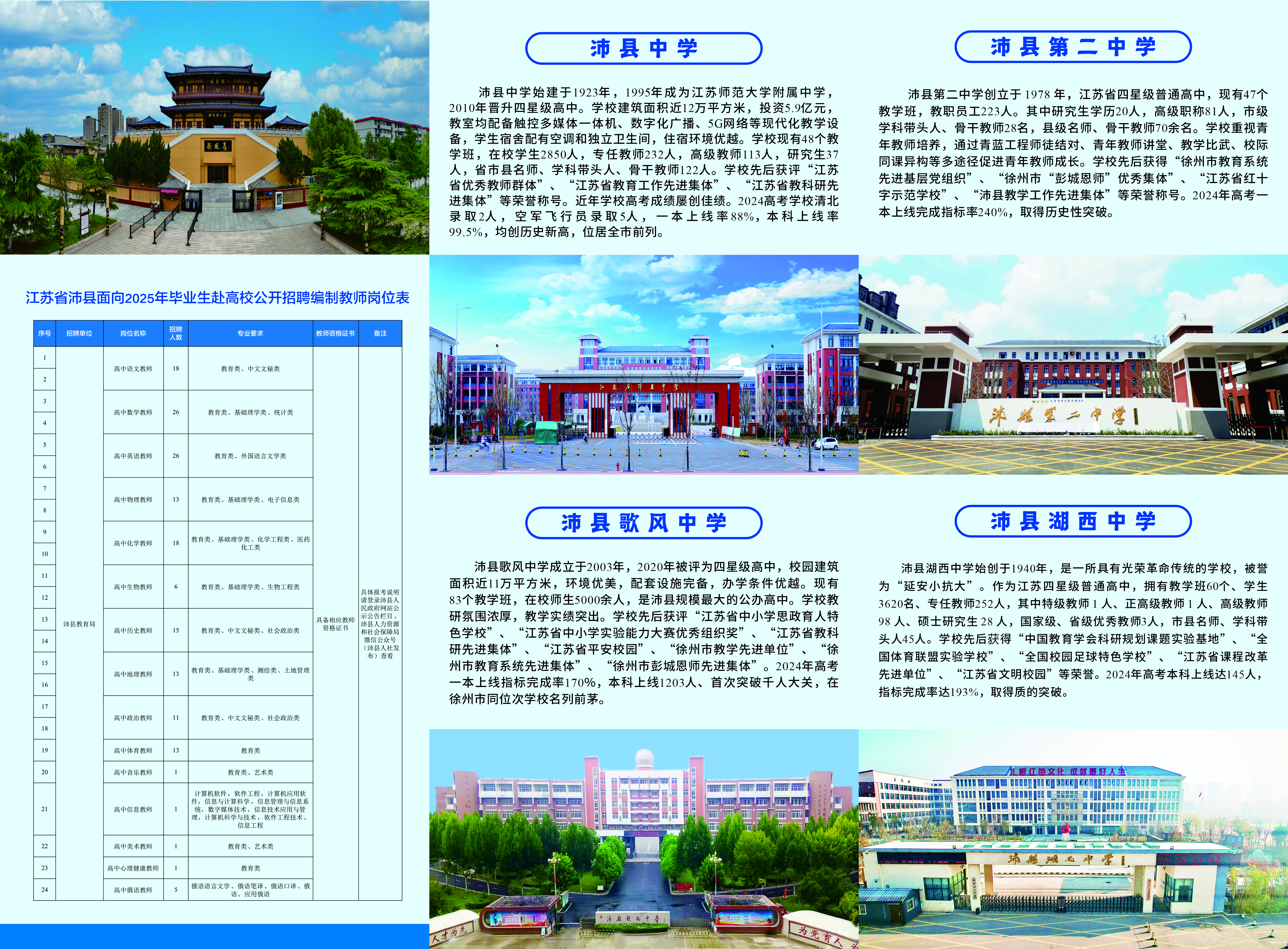 江苏省沛县面向2025年毕业生赴高校公开招聘编制教师