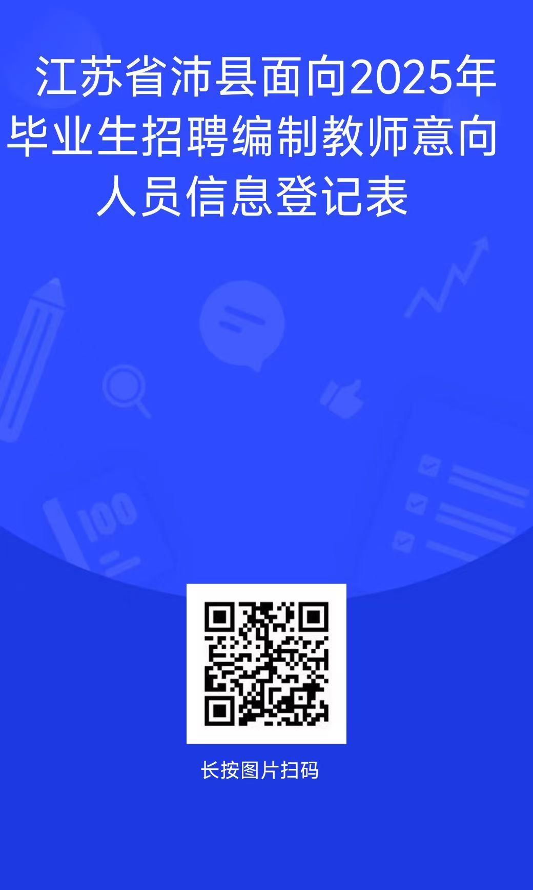江苏省沛县面向2025年毕业生赴高校公开招聘编制教师 ,有意愿的学生请扫码加群。