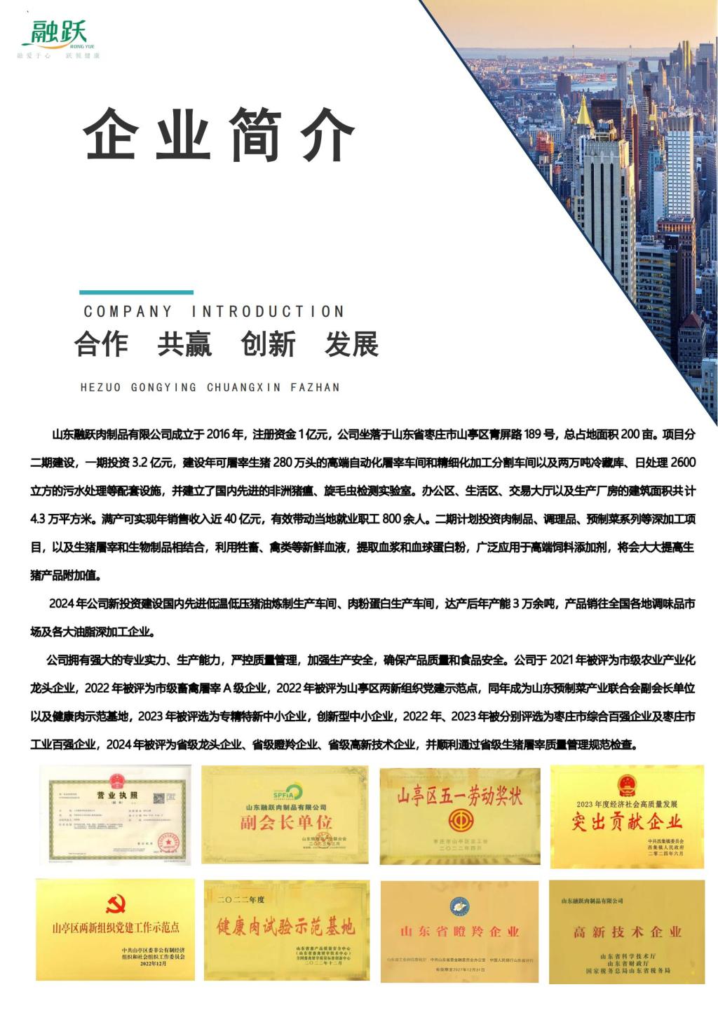 山东融跃肉质品有限公司招聘